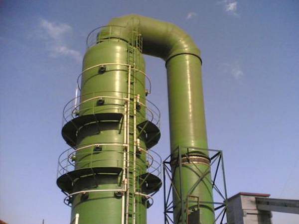 玻璃钢脱硫塔产品优点 1.除尘脱硫器采用分节组装,具有占地面积小、运输、安装方便的特点。 2.本产品采用国内先进的复合材料和耐高温玻璃钢树脂,使其增加了耐磨、耐高温程度,大大延长了使用寿命。 3.本产品是一种侧进顶出的冲击式除尘脱硫器,使烟气直接冲击水面,节水并减少污染,操作维修方便,运行费用低,脱水效果好,是一种经济实用的湿式除尘脱硫器。