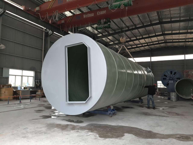 新型材质:预制泵站筒体结构由纤维缠绕玻璃钢(GRP)制成,电脑控制连续缠绕成型,确保厚度均匀并达到设计要求,质量稳定优良。