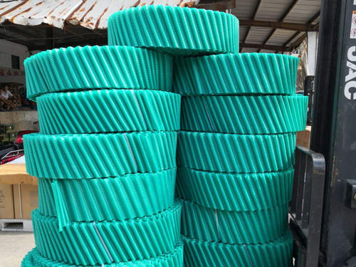 S波填料: 性能特点:具有重量轻,耐酸碱腐蚀性好,冷却效率高,应用范围广。适应温度:65— -35℃,阻燃性能好,氧指数≥30。 每片规格:长度1000mm 宽500mm。 厚度0.35mm 片距 35mm